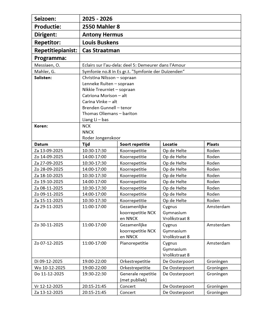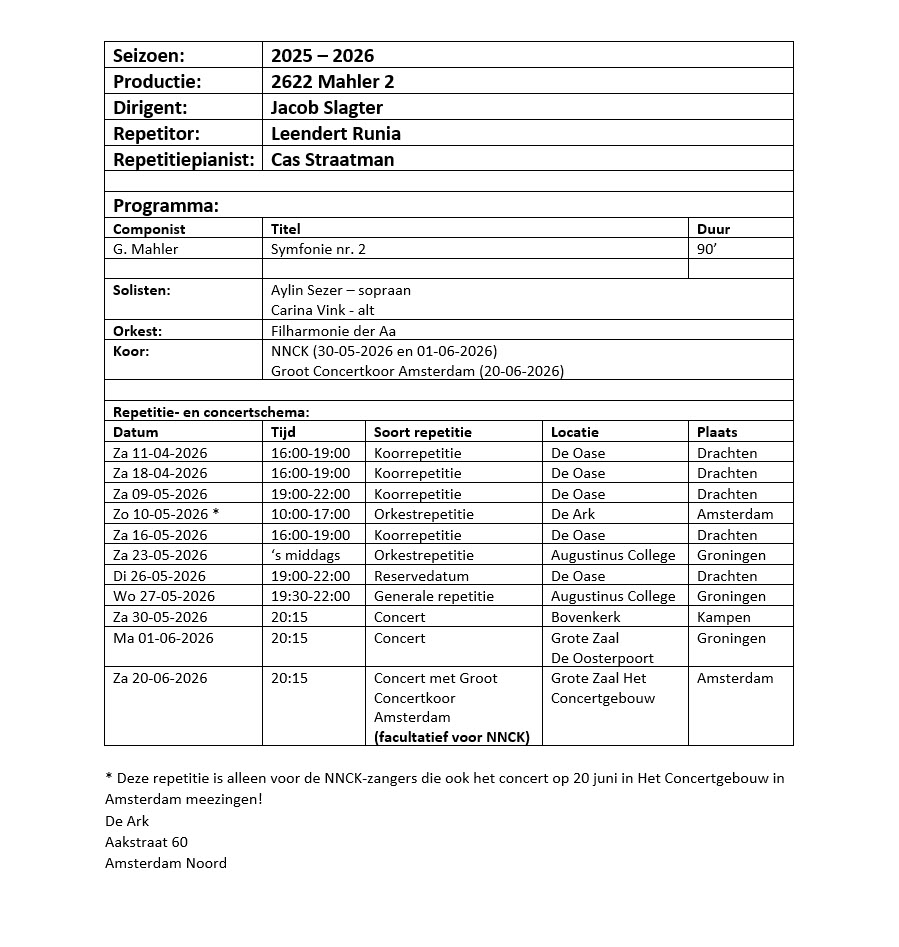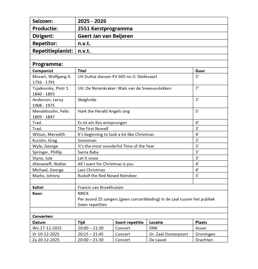 Hieronder tref je de beoogde programma’s met het NNCK in seizoen 2025 – 2026 aan.